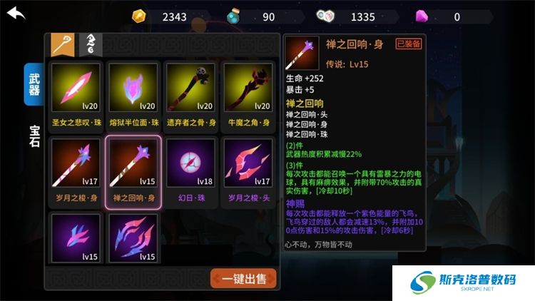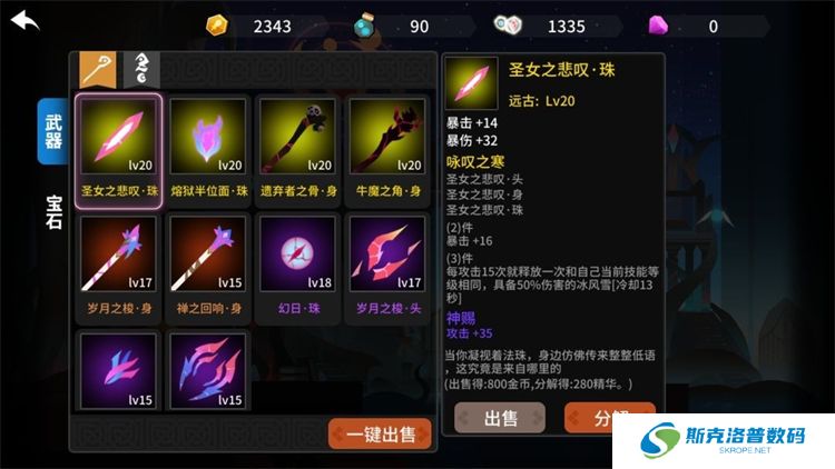 Boss装备(如图所示的黄色装备)是非常强大的武器,但它们有特殊限制,只能装备同系列的物品。例如,选择了“圣女之悲叹·珠”,其他装备也必须是圣女之悲叹系列的。