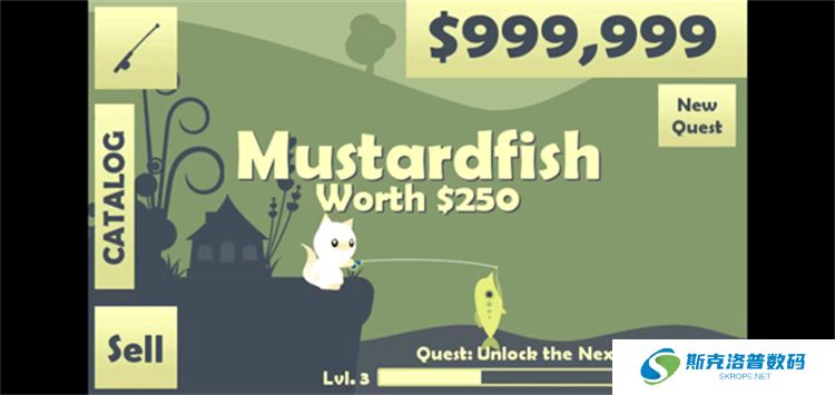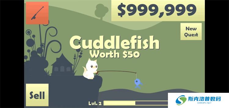 2、钓到鱼后,长按手机屏幕即可将鱼拉上来。成功钓到鱼后,玩家将获得金币奖励,可以通过点击屏幕左下角的【sell】按钮将鱼出售换取更多金币。