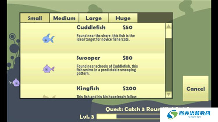 3、游戏中的鱼种多样,每种鱼的售价不同,因此可以根据钓到的鱼来积累金币。