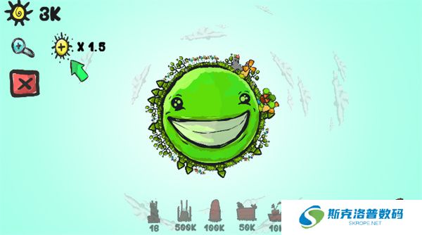2. 左上角显示着不断增长的【阳光值】,而建造建筑将消耗阳光。随着建筑数量的增加,阳光增长的速度也会加快!然而,要小心地球的承载能力,一旦超过地球的承载上限,地球将面临毁灭。