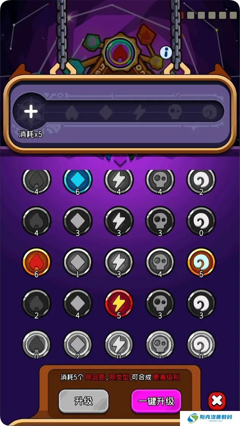 另外通过一键升级。消耗5个同品质的宝石也能合成更高品质的宝石。游戏内宝石的产出是非常多的,大家完全不用担心搭配不起来的问题~