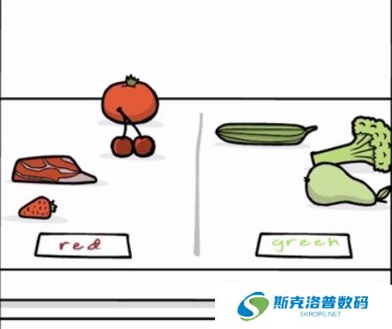1、首先,将晚餐桌上的食物按颜色分类并食用。